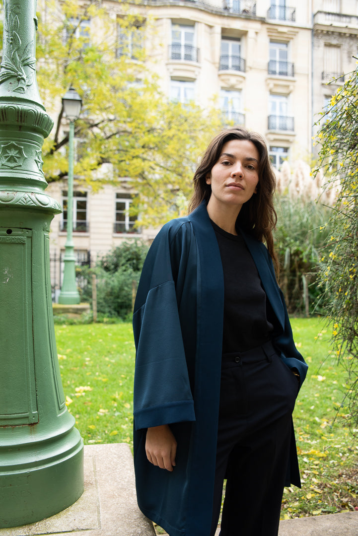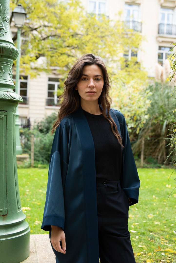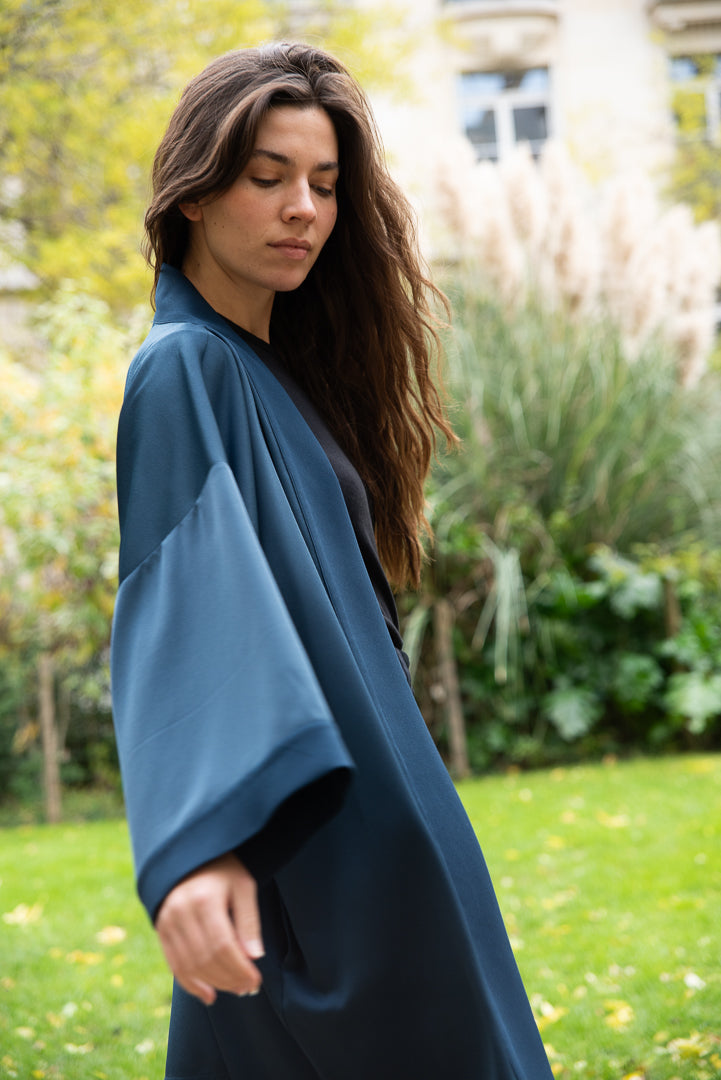 Succomber à la veste Kimono Chang qui signifierait Libre en mandarin. Ce modèle se porte over size et peut-être accompagné d’une ceinture. Cette pièce inédite, vous donnera indéniablement de l’allure.