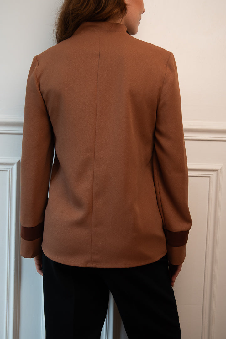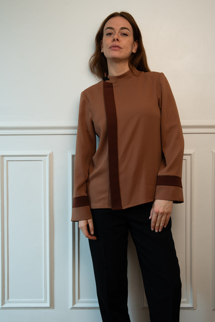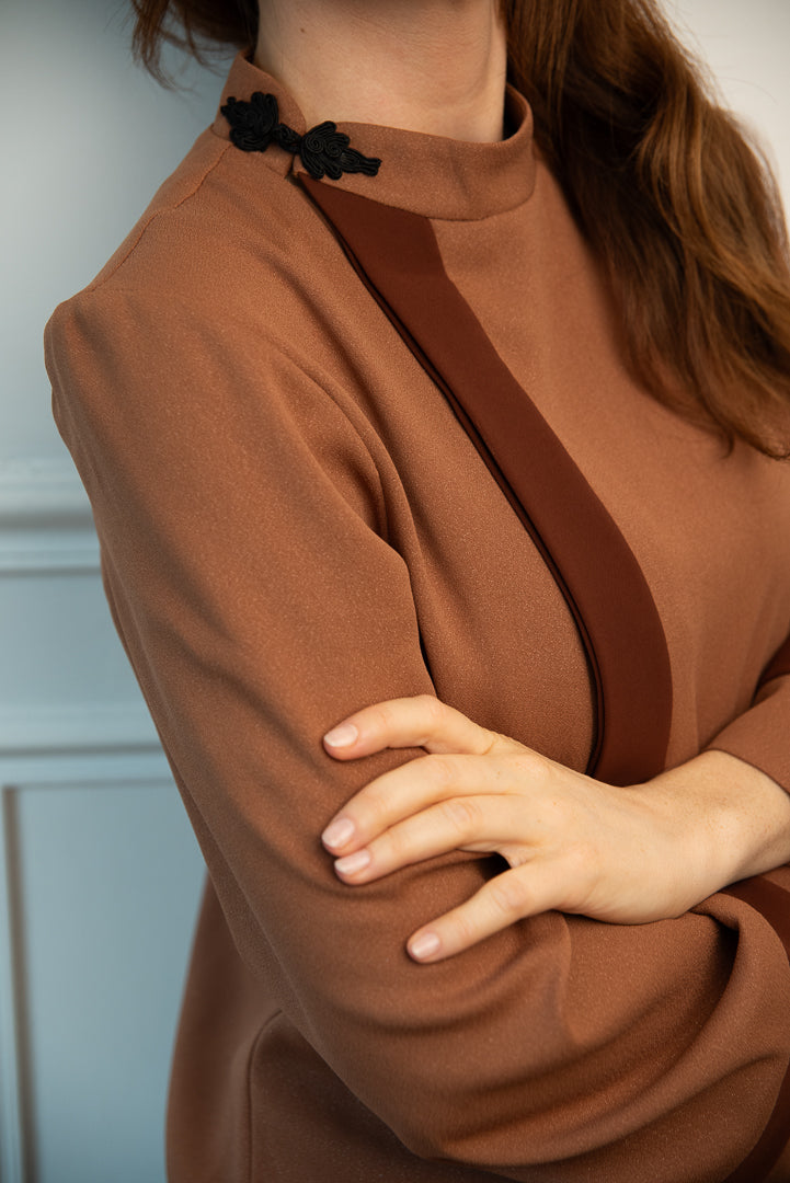 Un délicat bouton traditionnel chinois est placé sur le coté du col pour donner un style chic et unique.