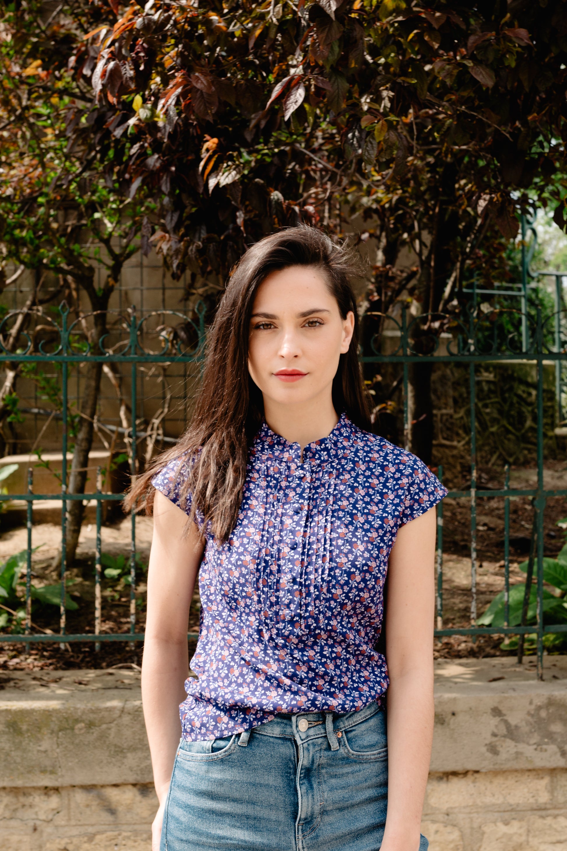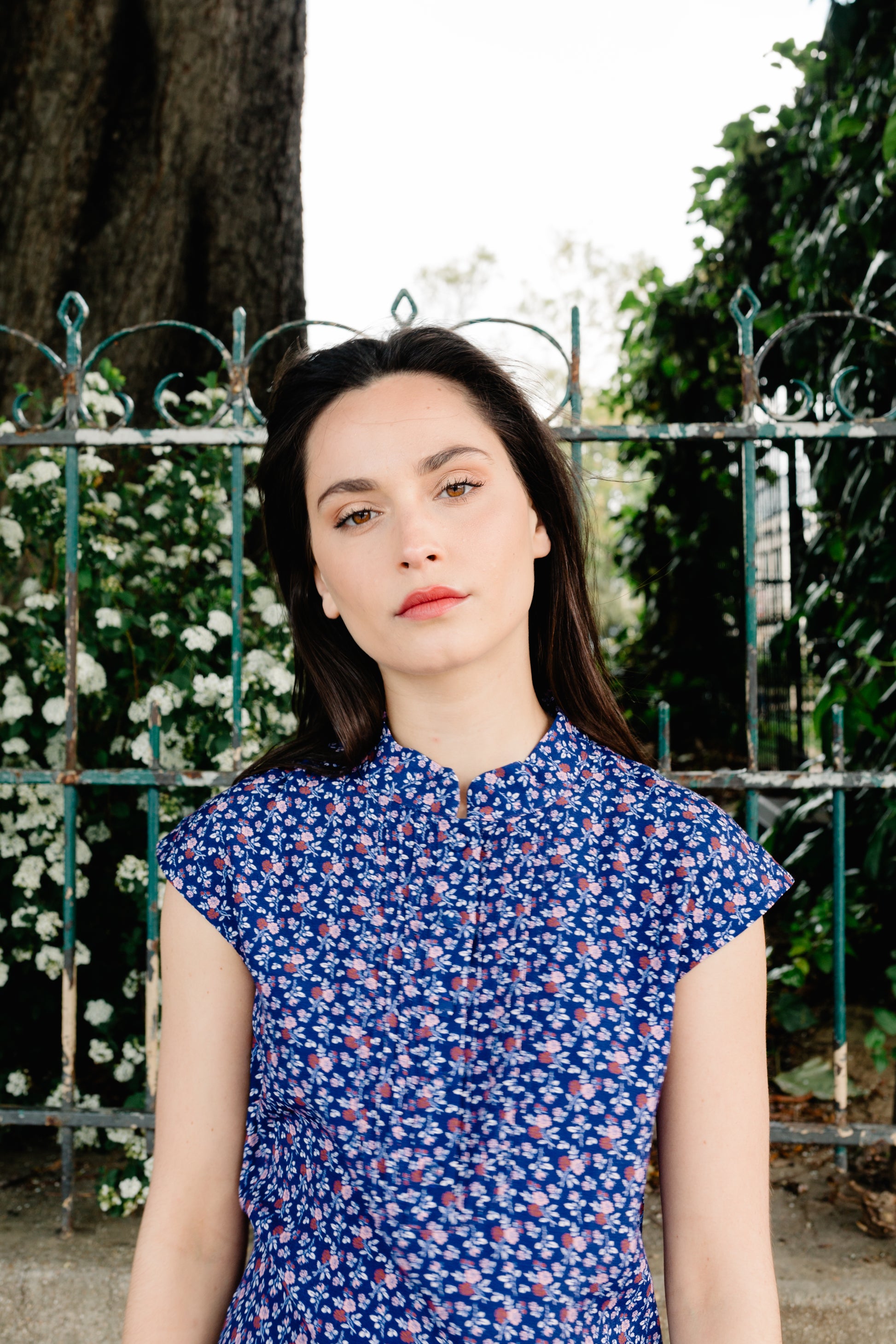 Couleur: bleu marine avec des motifs fleuris