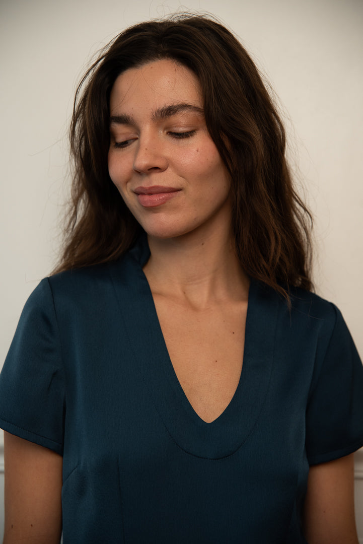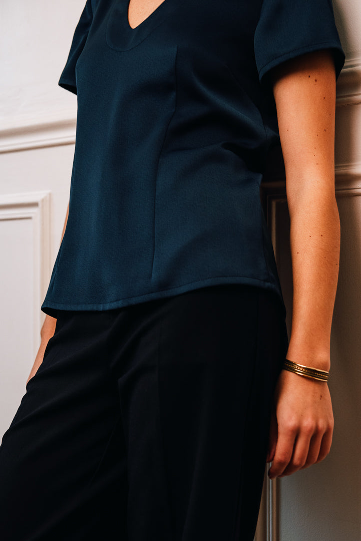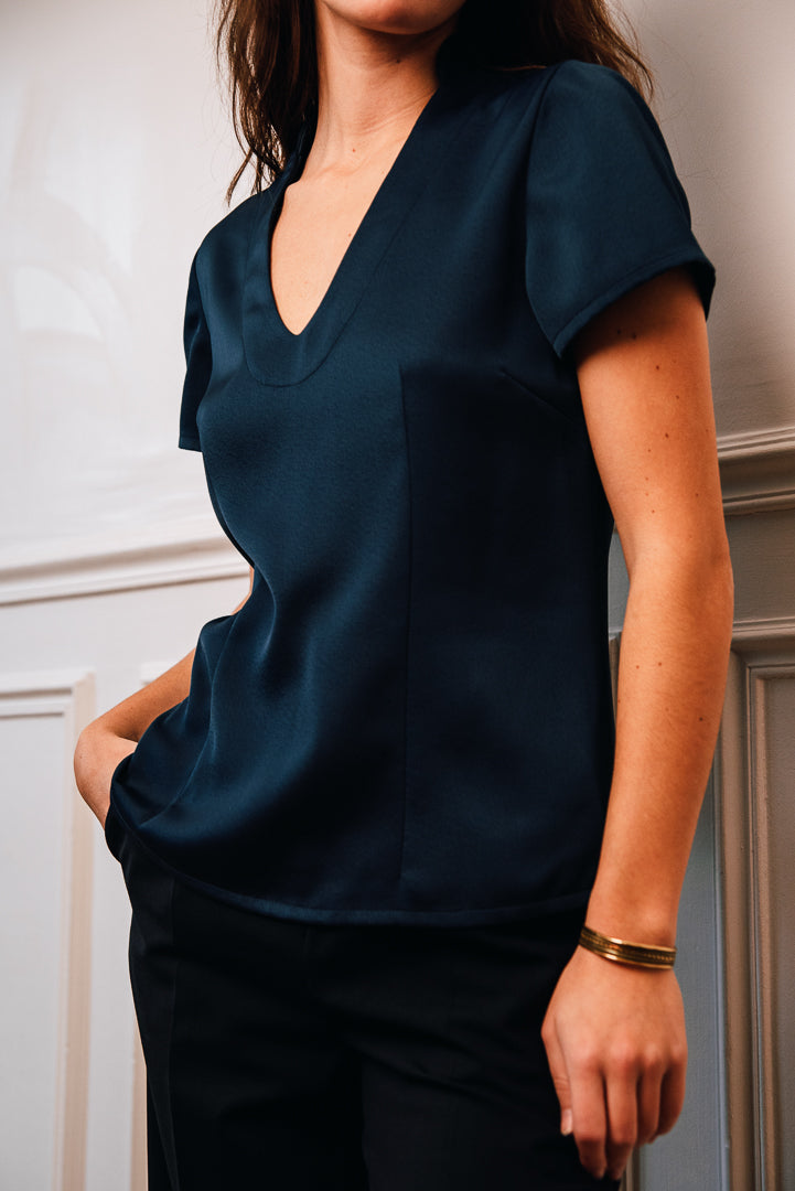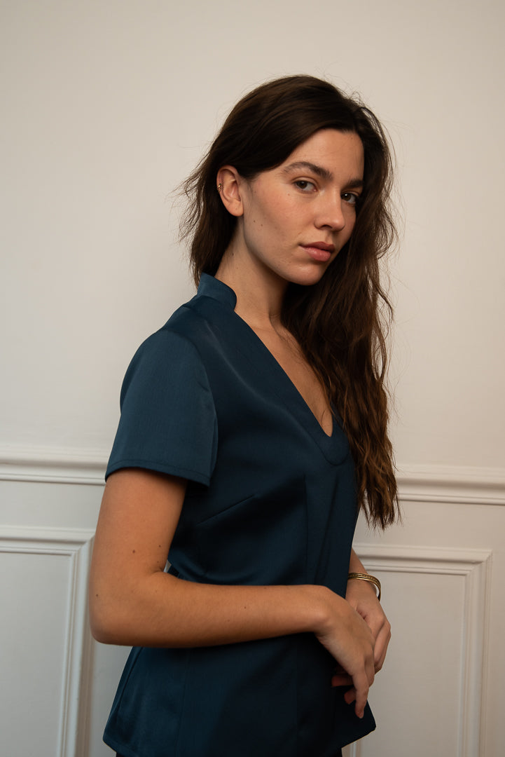 Laisser vous séduire par cet élégant top bleu appelé Jing qui signifierait paix et sérénité en Mandarin.
