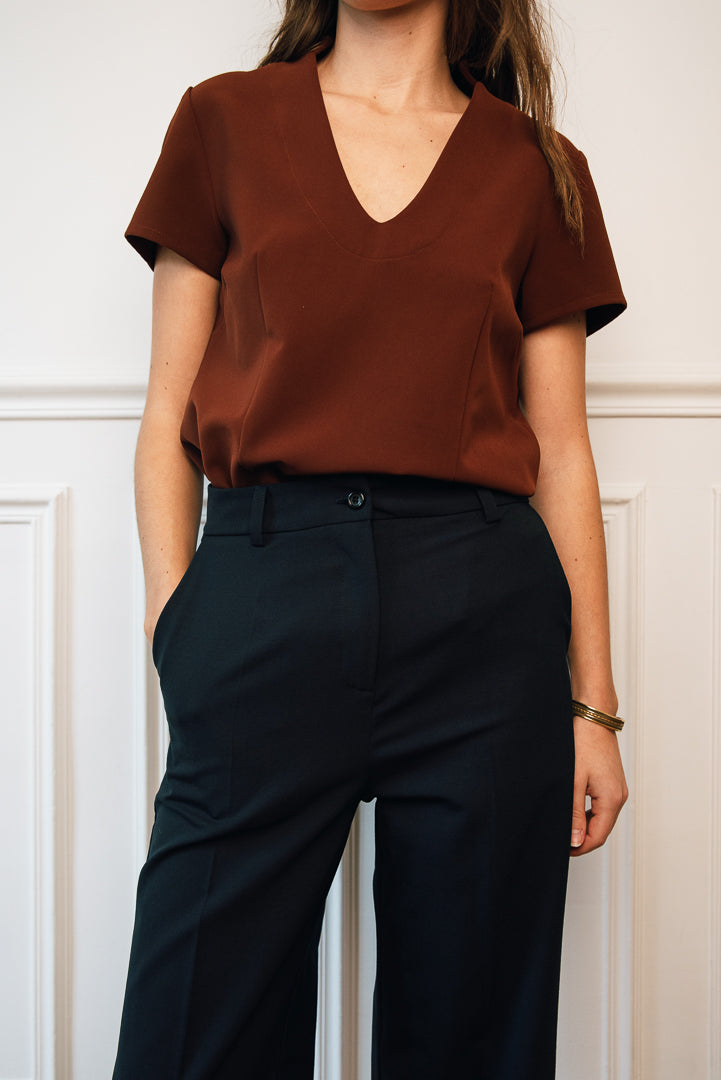 Laisser vous séduire par cet élégant top appelé Mei qui épouse les formes du corps avec une jolie découpe princesse au dos.