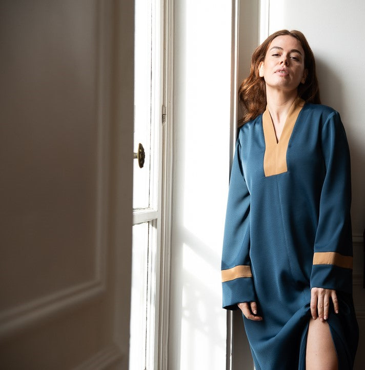 La robe Tian est légèrement évasée, avec une fente subtilement placée au milieu. Soulignée par un col V, la robe Tian vous donnera immanquablement une allure chic et décontractée à la fois.