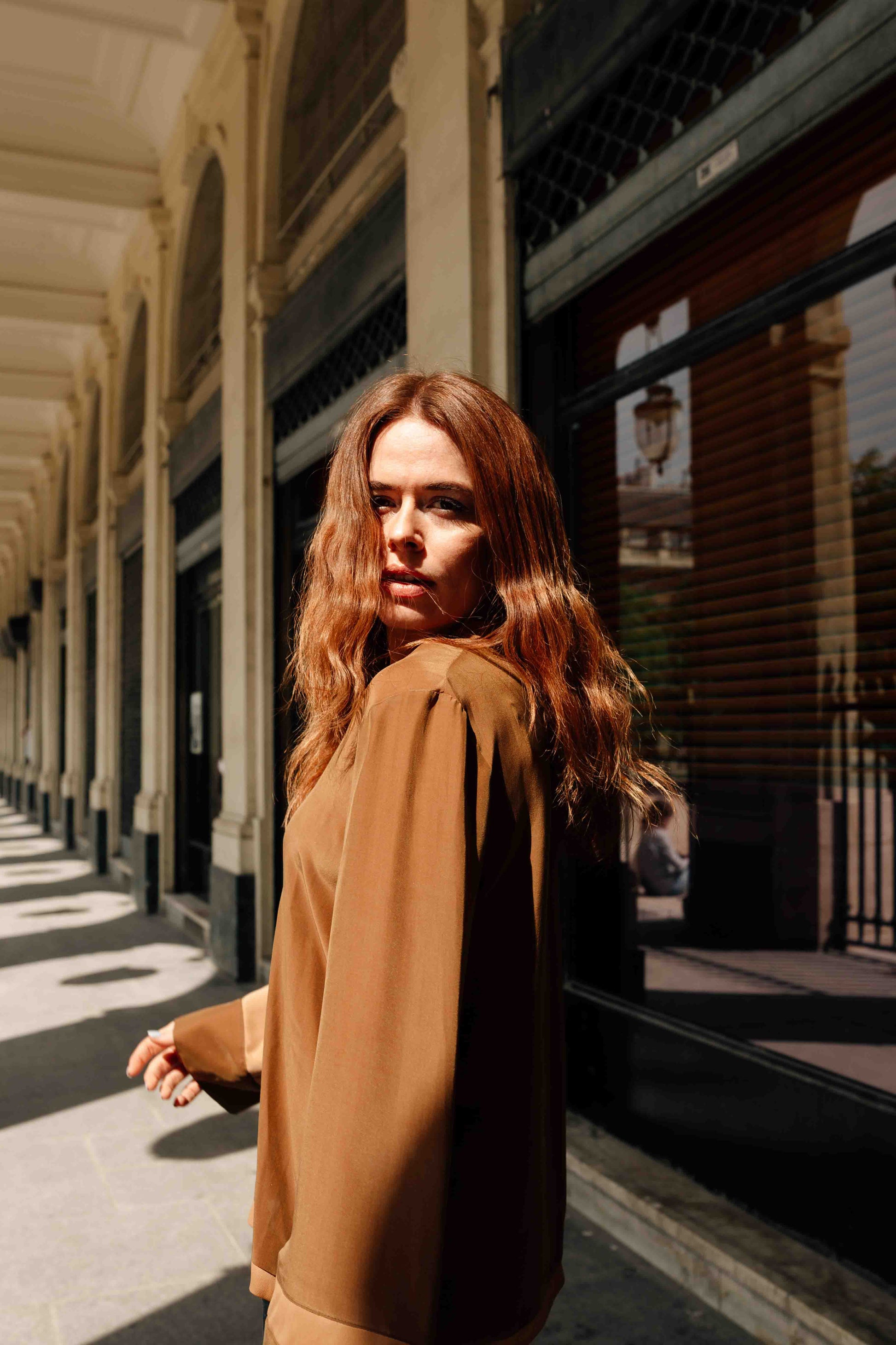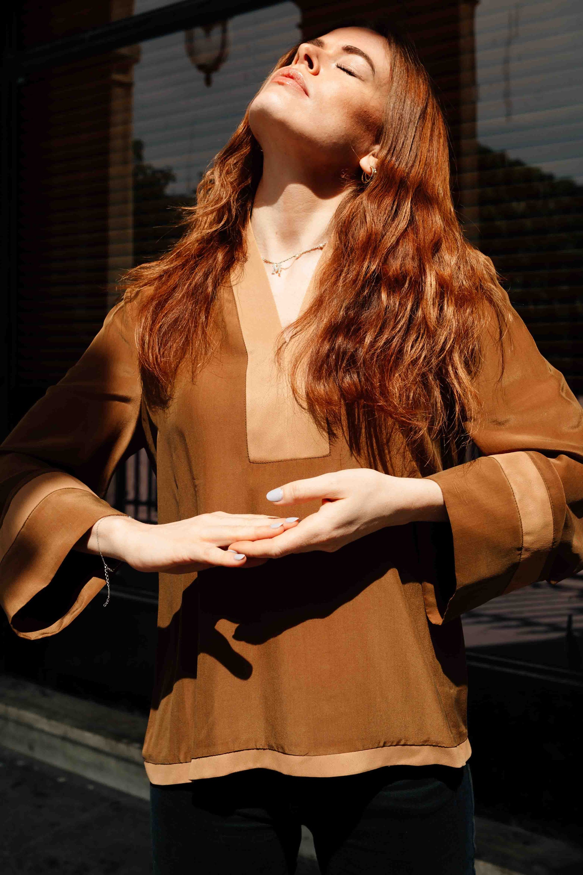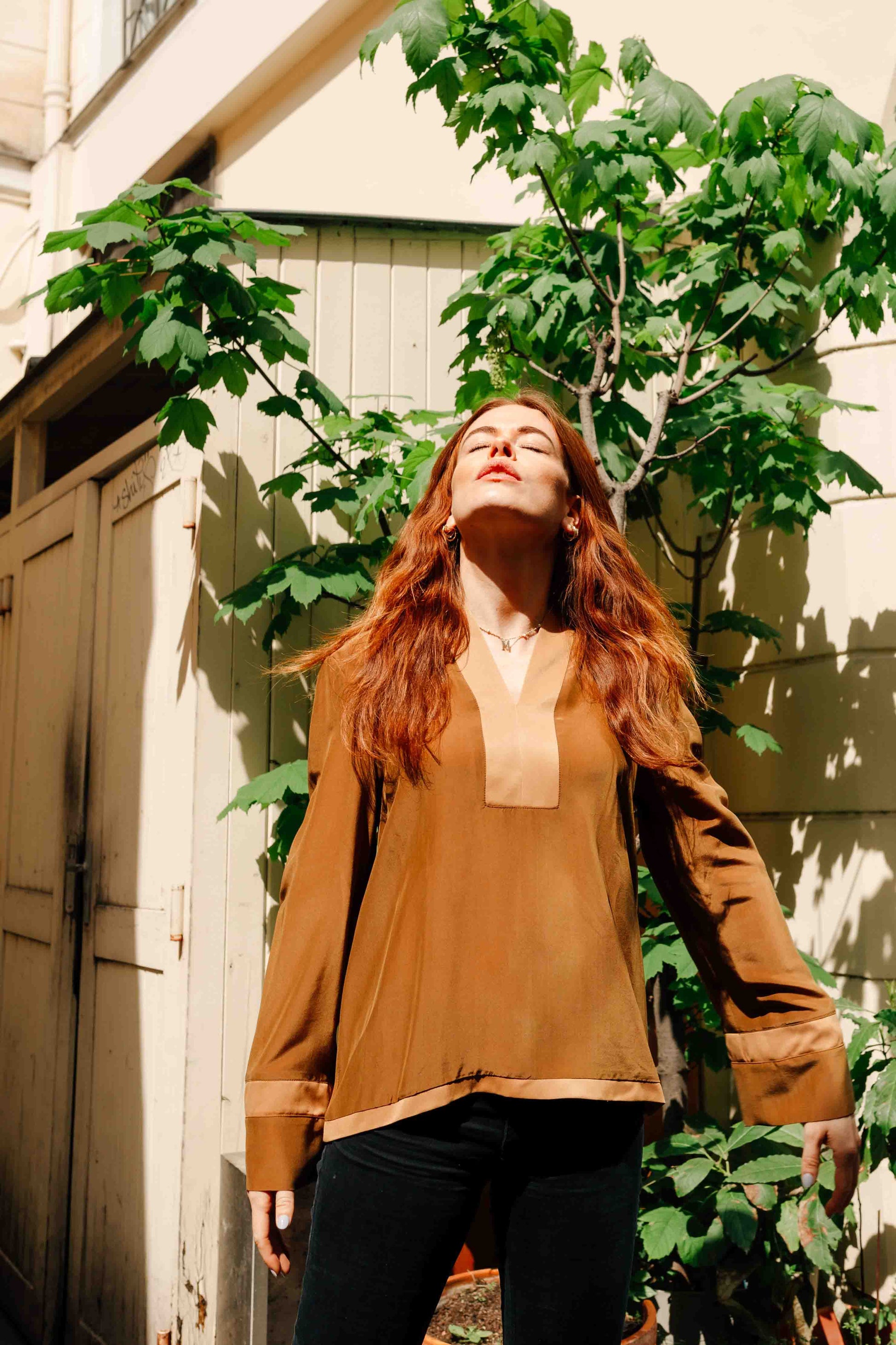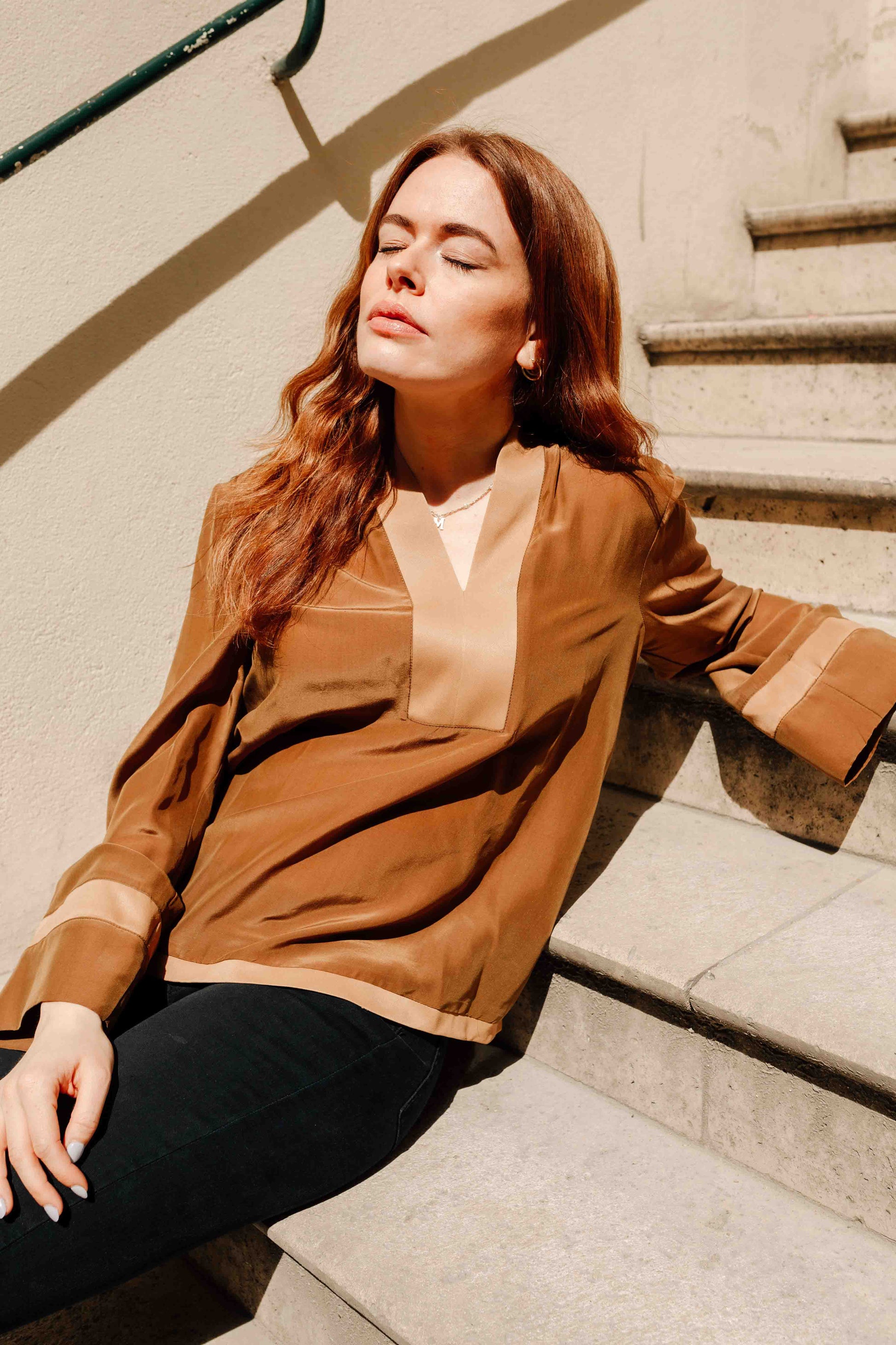 Blouse évasée, soulignée par un col V lui donnant une touche chic et décontractée.