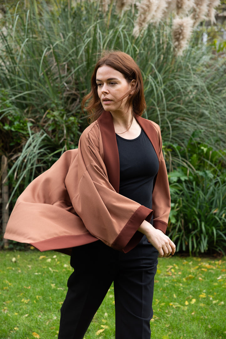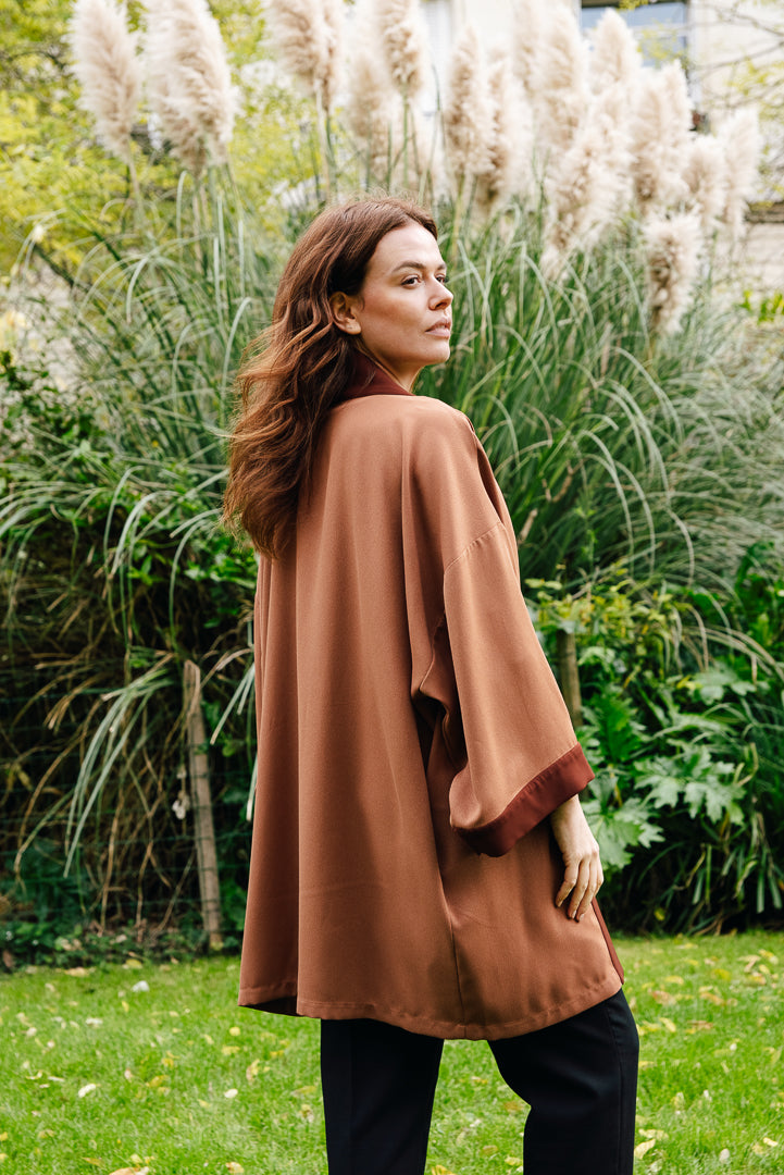Succomber à la veste Kimono Yang revisitée par nos soins. Ce modèle se porte oversize et peut-être accompagné d’une ceinture. Cette pièce inédite, vous donnera indéniablement de l’allure.